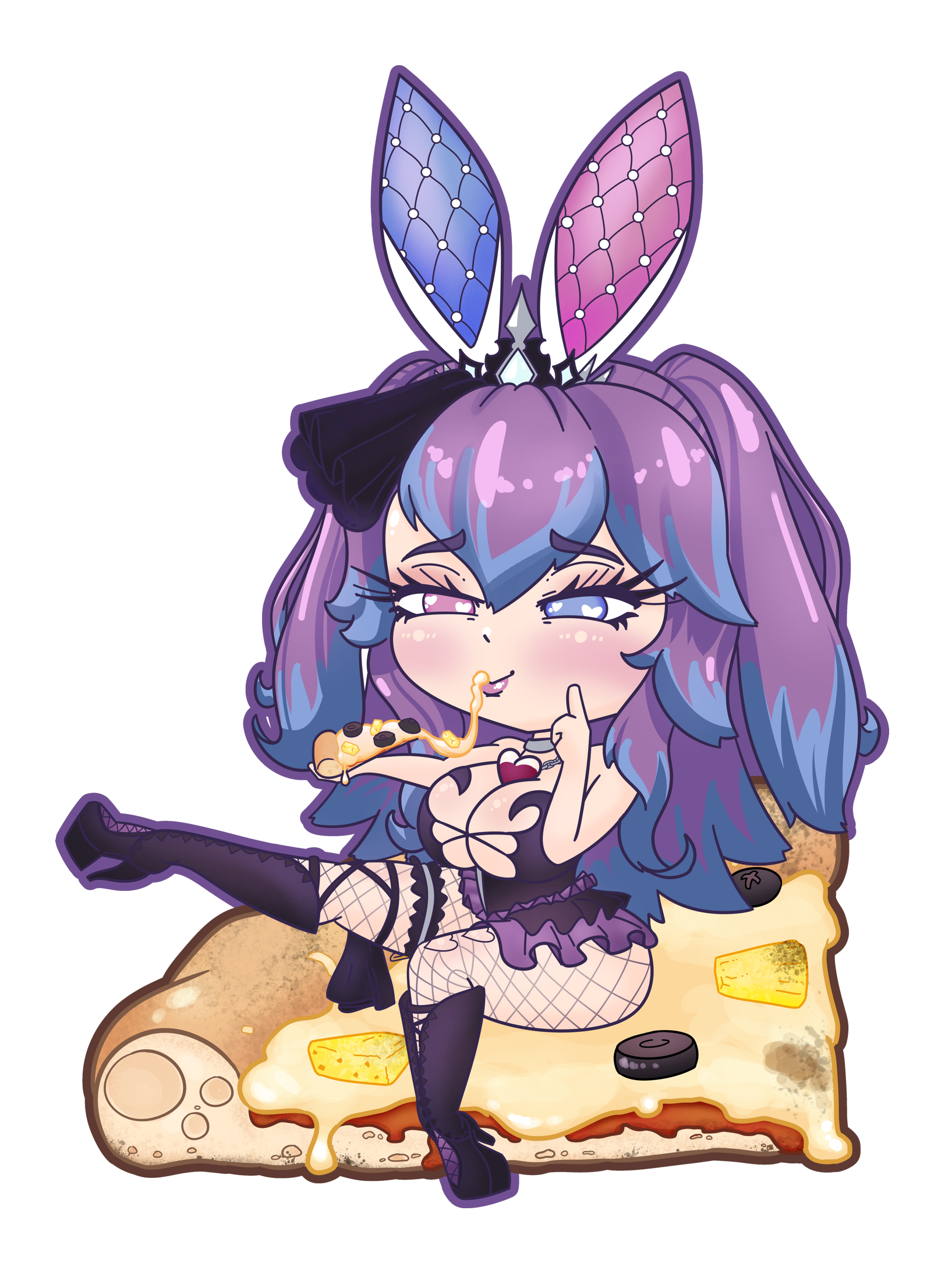 A lice of waifu pizza, featuring CottonTailVA! Made this to print out as a sticker for ya girl.