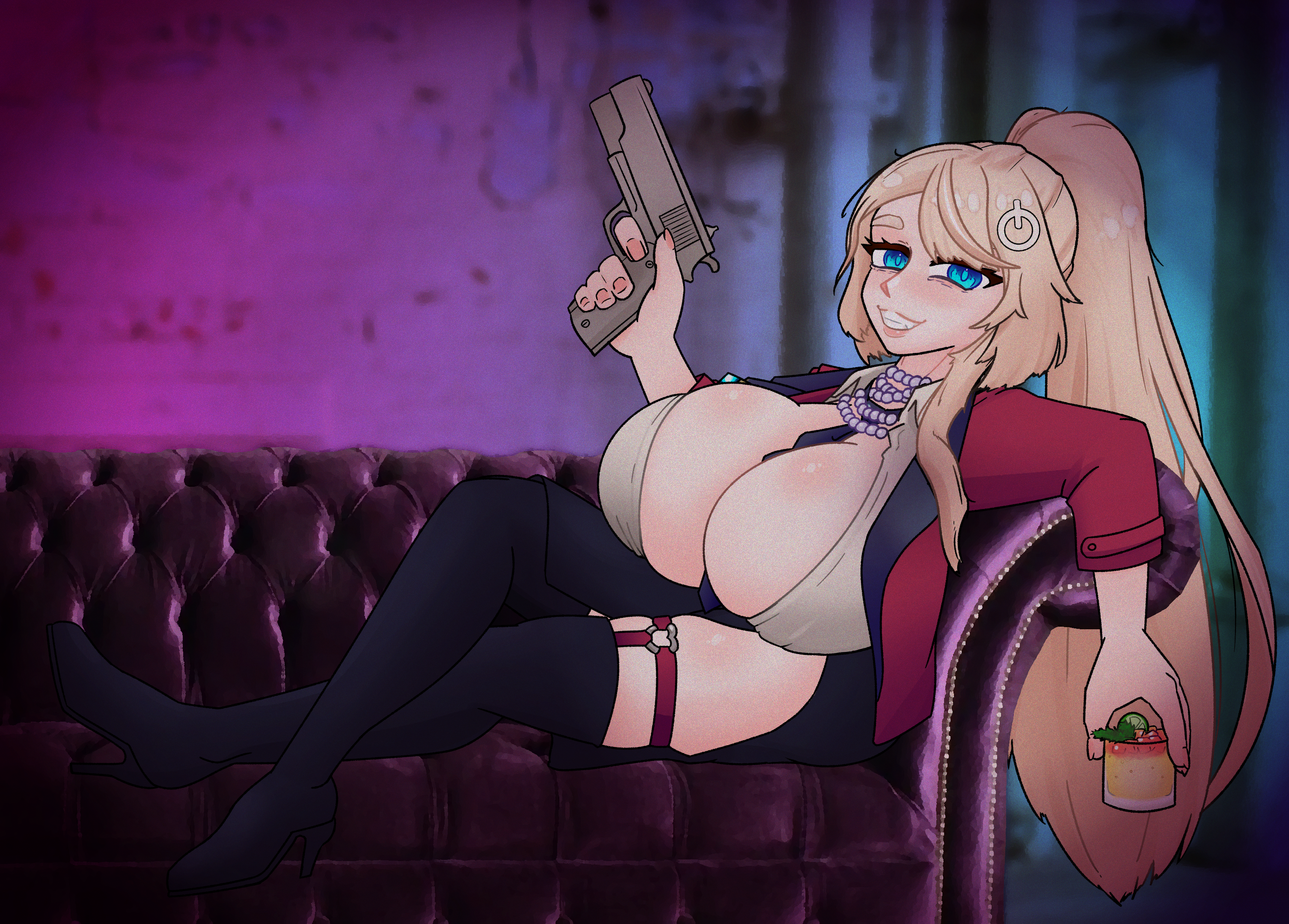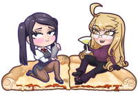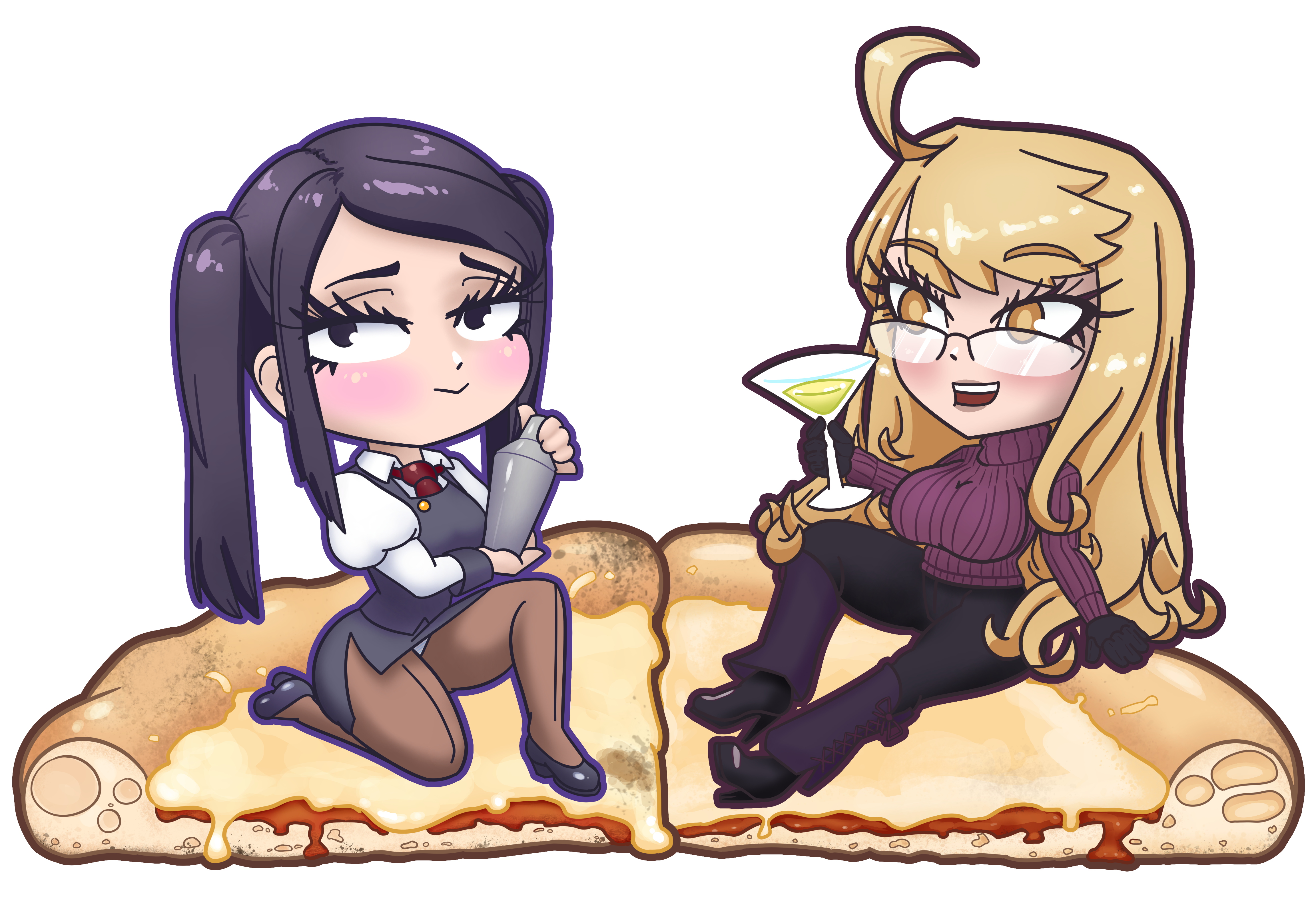 Jill and Alma from Va-11 Hall-A, on pizza! for Waifu Pizza style stickers and Charms!